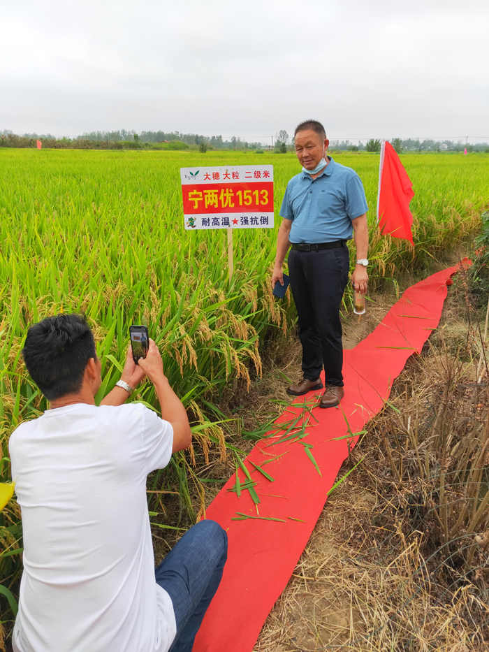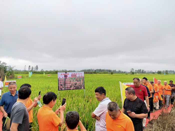 在示范田,各位種業(yè)精英對“寧兩優(yōu)1513”的株葉形態(tài)、結實率、穗型、抗倒能力都非常認可,無不夸口稱贊!都表示愿意大力推廣,讓好的品種播到千家萬戶,造福老百姓!