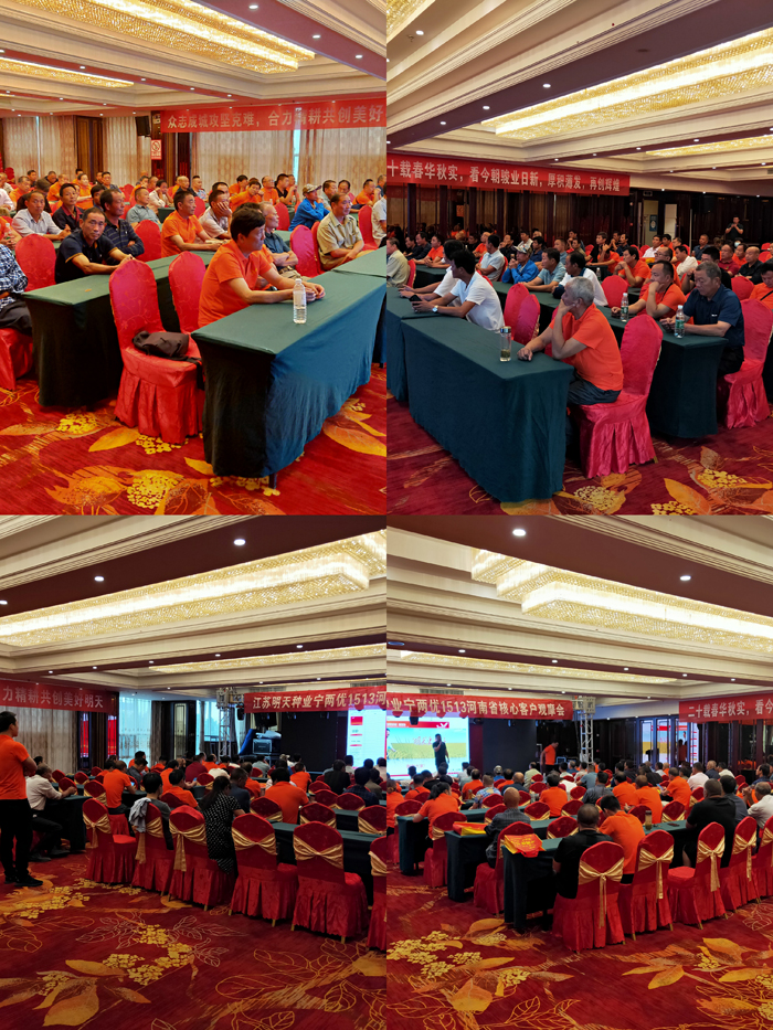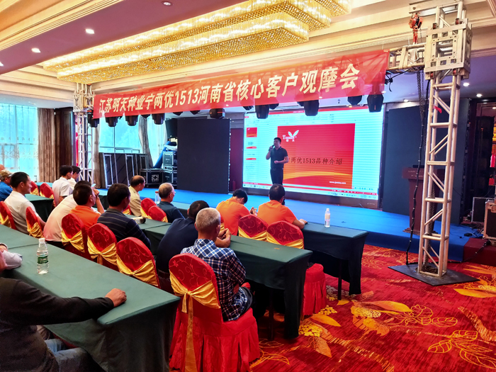 會議第二項,固始縣觀堂鄉(xiāng)零售商許向東向大家介紹了所在區(qū)域“寧兩優(yōu)1513”的表現(xiàn)情況:雖然今年“寧兩優(yōu)1513”只是剛開始示范,但是所有種過“寧兩優(yōu)1513”的農(nóng)戶都說好,明年都會增加種植面積! 會議第三項由羅山縣代理商許有勇發(fā)言,許總今年在信陽地區(qū)鋪貨布點最多,對“寧兩優(yōu)1513”的表現(xiàn)也掌握的更全面。他表示:能達到“寧兩優(yōu)1513”這種穗型并且結實率在90%以上的品種不常見,27.7克的千粒重,增產(chǎn)潛力巨大,是一個極具推廣價值的品種! 此次會議的召開,讓更多的種業(yè)界朋友了解了“寧兩優(yōu)1513”這個品種,對信陽地區(qū)推廣打下了堅實的基礎! 布局謀發(fā)展,求變贏未來,江蘇明天種業(yè)愿與您一道創(chuàng)造種業(yè)的美好明天!