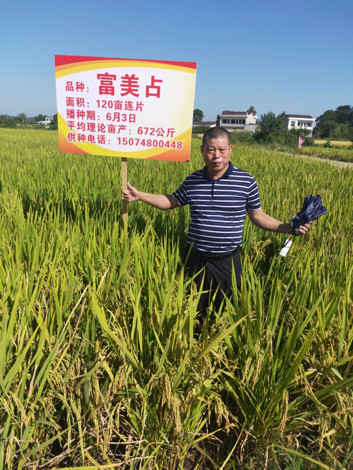 9月25日上午9點(diǎn)左右,位于寧鄉(xiāng)市回龍埔鎮(zhèn)豐收村種植大戶(hù)謝老板種植的120畝連片“富美占”稻田里人頭攢動(dòng),100多位合作伙伴正在田間查看今年“富美占”品種的表現(xiàn)情況。