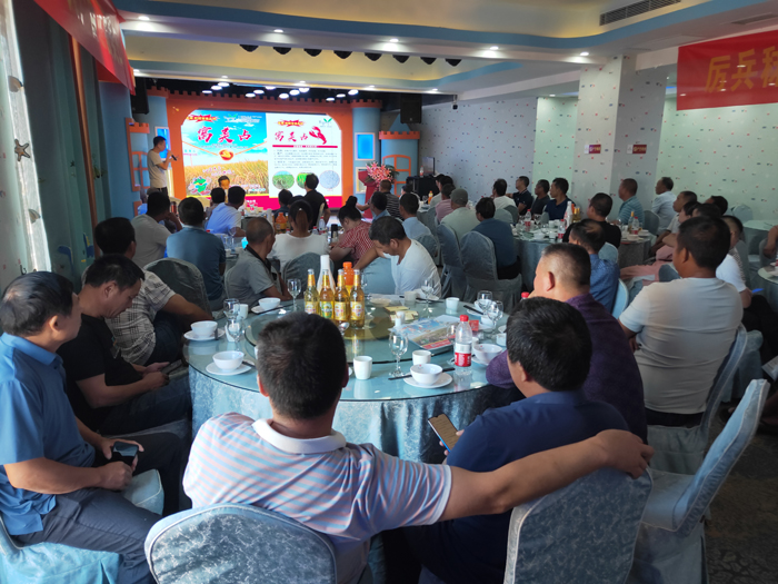 會(huì)議第二項(xiàng),寧鄉(xiāng)代理商劉德良劉總向大家詳細(xì)介紹了“富美占”由他推廣三年的經(jīng)驗(yàn)及總結(jié),分別在品種來(lái)源、品種在湖南的表現(xiàn)及特征特性、栽培技術(shù)、病蟲(chóng)害防治等方面作了匯報(bào)。在場(chǎng)嘉賓對(duì)“富美占”品種有了更全面深刻的了解和認(rèn)識(shí)。