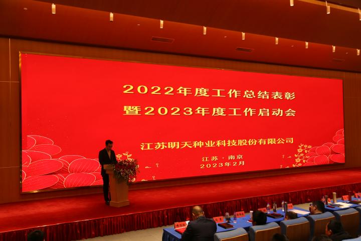“律回春暉漸,萬(wàn)象始更新”。在春暖花開(kāi),萬(wàn)物復(fù)蘇的新年伊始,2月5日江蘇明天種業(yè)全體人員齊聚南京圣和文化交流中心隆重召開(kāi)2022年度總結(jié)表彰暨2023年工作啟動(dòng)大會(huì)。公司全體領(lǐng)導(dǎo)班子成員、2022年度先進(jìn)和優(yōu)秀員工代表及子公司員工等160余人參加了會(huì)議,會(huì)議由公司副總經(jīng)理胡玉成主持。