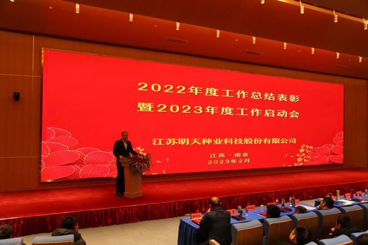 嚴(yán)總在工作報(bào)告中指出2022年是明天種業(yè)不平凡的一年,在面對(duì)新冠疫情、市場(chǎng)競(jìng)爭(zhēng)日趨激烈的嚴(yán)峻形勢(shì),公司領(lǐng)導(dǎo)班子同心同德、精心組織;各級(jí)管理人員積極響應(yīng)、主動(dòng)作為;一線員工愛(ài)崗敬業(yè)、工作勤奮;全體員工齊努力,共克難,經(jīng)受住了考驗(yàn)。公司各項(xiàng)事業(yè)穩(wěn)步推進(jìn),成果豐碩。2022年銷(xiāo)售和利潤(rùn)取得新的雙突破,實(shí)現(xiàn)四連增;公司被農(nóng)業(yè)農(nóng)村部列入“國(guó)家種業(yè)陣型企業(yè)”和再次被認(rèn)定為“中國(guó)種業(yè)信用骨干企業(yè)”,綜合排名第11位;“制種大縣+龍頭企業(yè)”項(xiàng)目順利實(shí)施,金湖產(chǎn)業(yè)園建設(shè)基本完成。2023年是公司第一個(gè)五年規(guī)劃實(shí)施的關(guān)鍵第四年,全面完成全年的工作目標(biāo)任務(wù)對(duì)明天種業(yè)未來(lái)的發(fā)展意義深遠(yuǎn)。公司將全面貫徹落實(shí)黨的二十大精神,全面落實(shí)“以國(guó)內(nèi)市場(chǎng)為主體,創(chuàng)新升級(jí)實(shí)現(xiàn)跨越,以國(guó)外市場(chǎng)為突破,積聚資源,注重實(shí)效”的戰(zhàn)略部署,以“搶抓種業(yè)振興機(jī)遇,拼出更加美好明天”為行動(dòng)綱領(lǐng),超前謀劃、統(tǒng)籌管理、積極落實(shí),確保2023年經(jīng)營(yíng)目標(biāo)任務(wù)的實(shí)現(xiàn)。